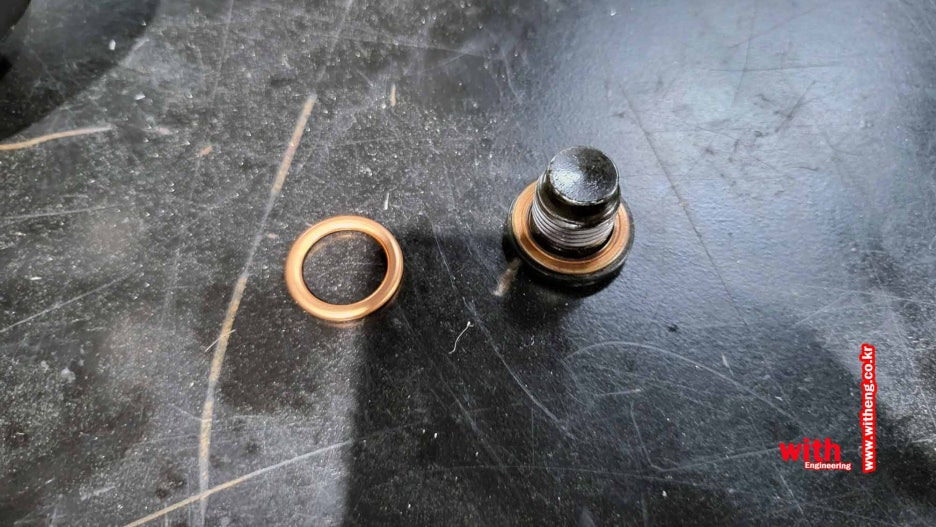 신품 동와셔 장착 후 볼트 조립합니다.