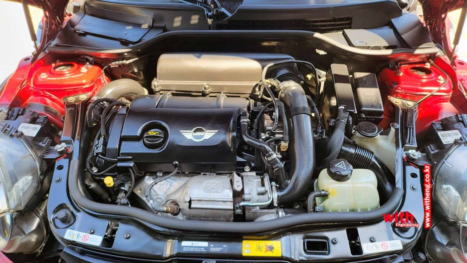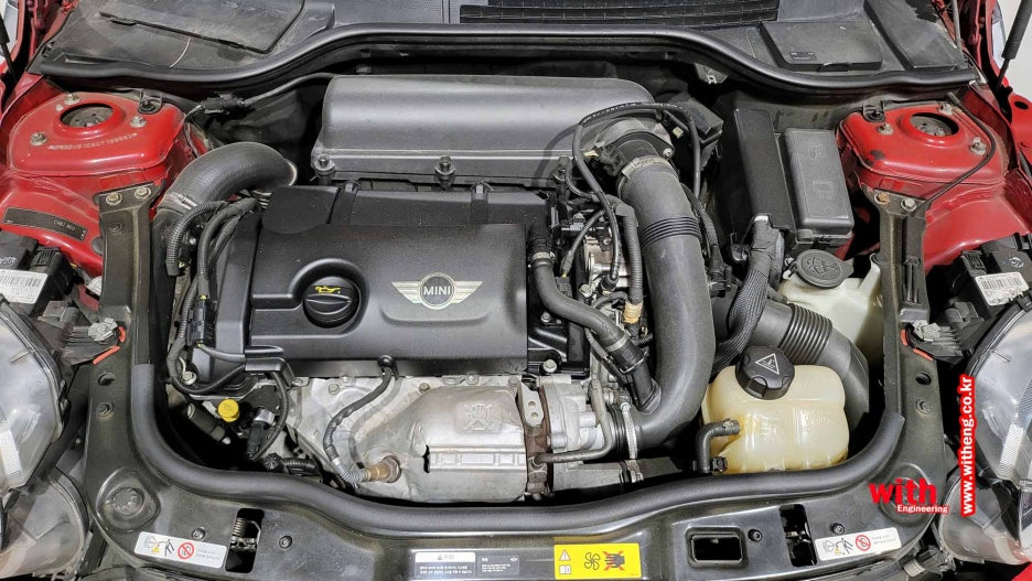 R56 미니쿠퍼 S N18 엔진오일 교환으로 입고 냉각수 호스 파손으로 냉각수 호스 교환과 엔진오일 교환하였습니다.