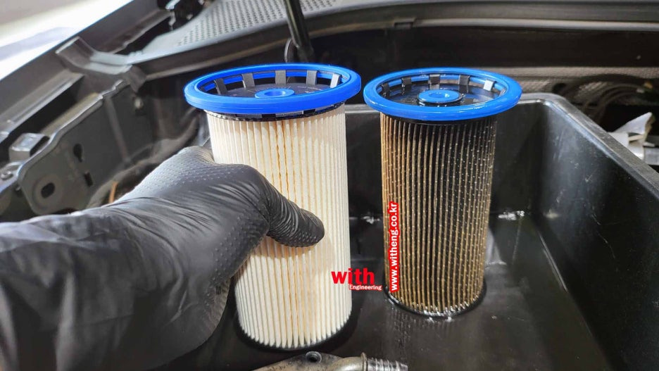 신품 연료필터 장착과 부품 조립 완료합니다.