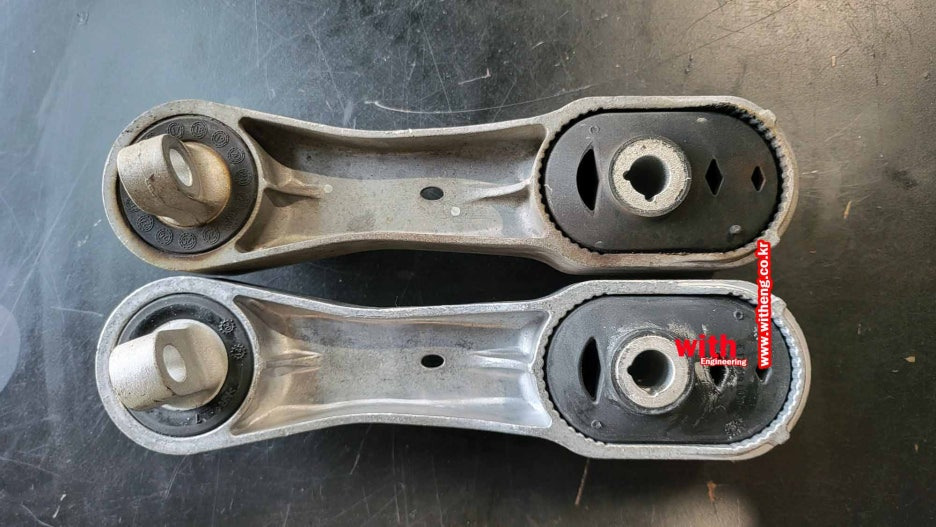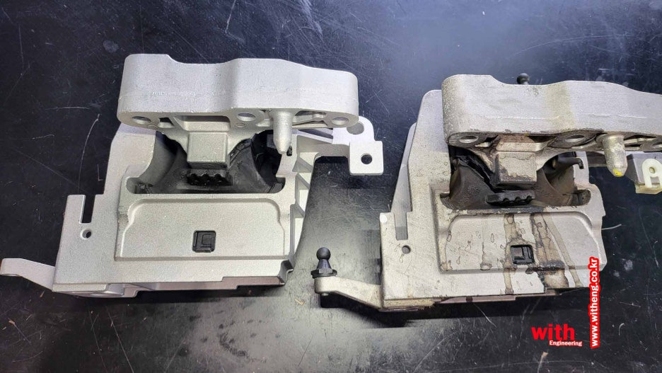 신품 엔진 마운트와 파손된 엔진 마운트입니다.
